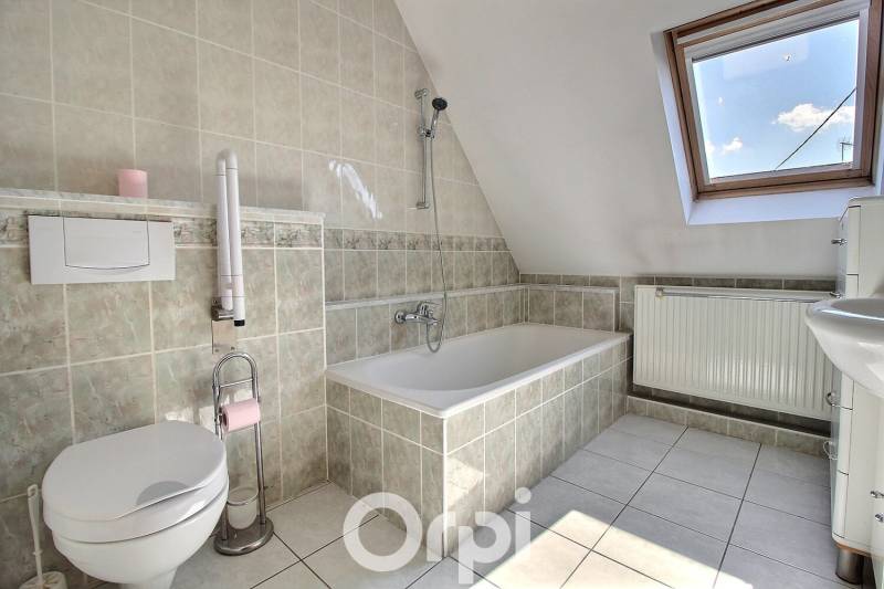 A l'étage vous trouverez : un dégagement, une salle de bains avec W.C, deux chambres et un bureau.